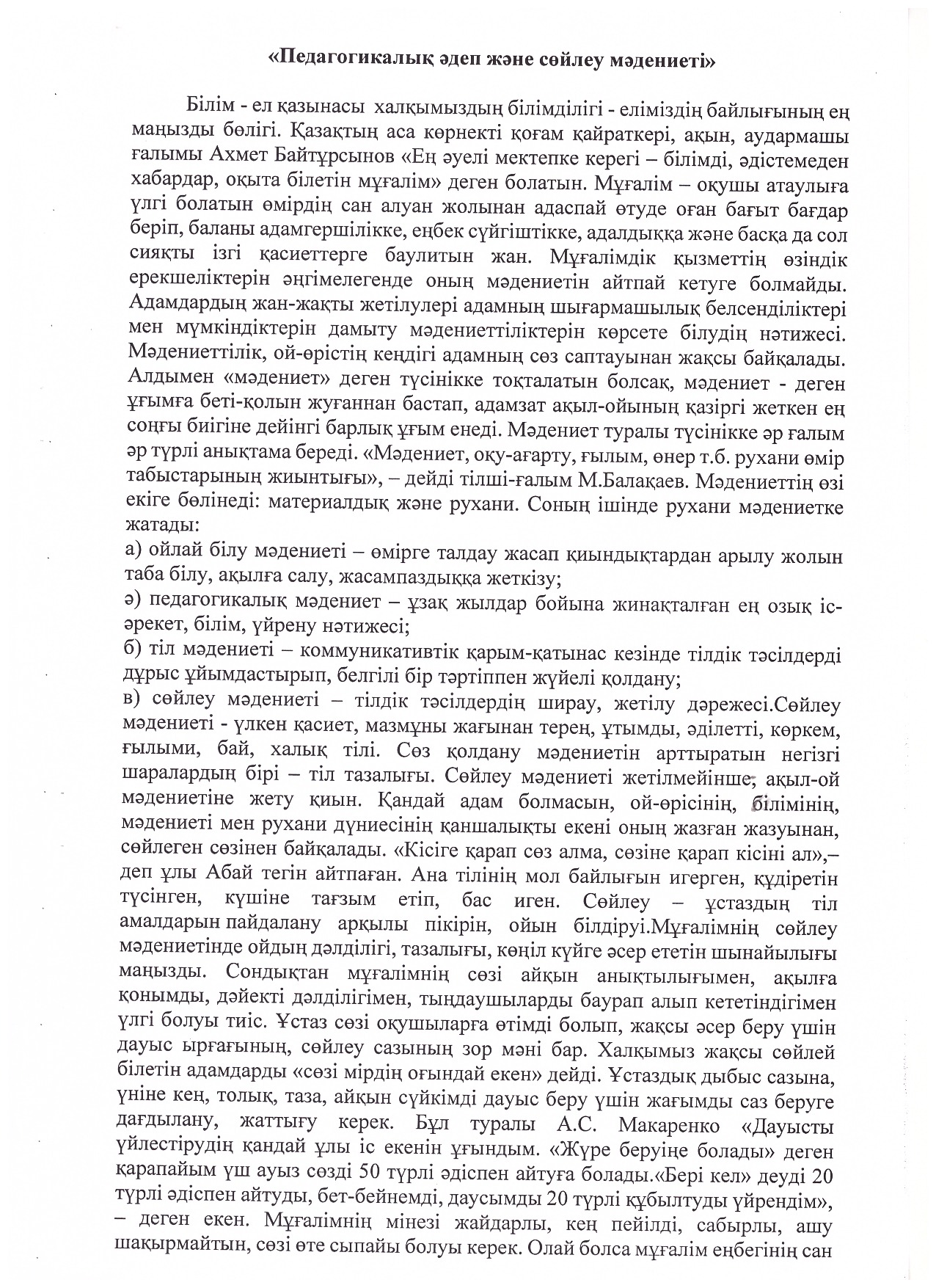 "Педагогикалық әдеп және сөйлеу мәдениеті"