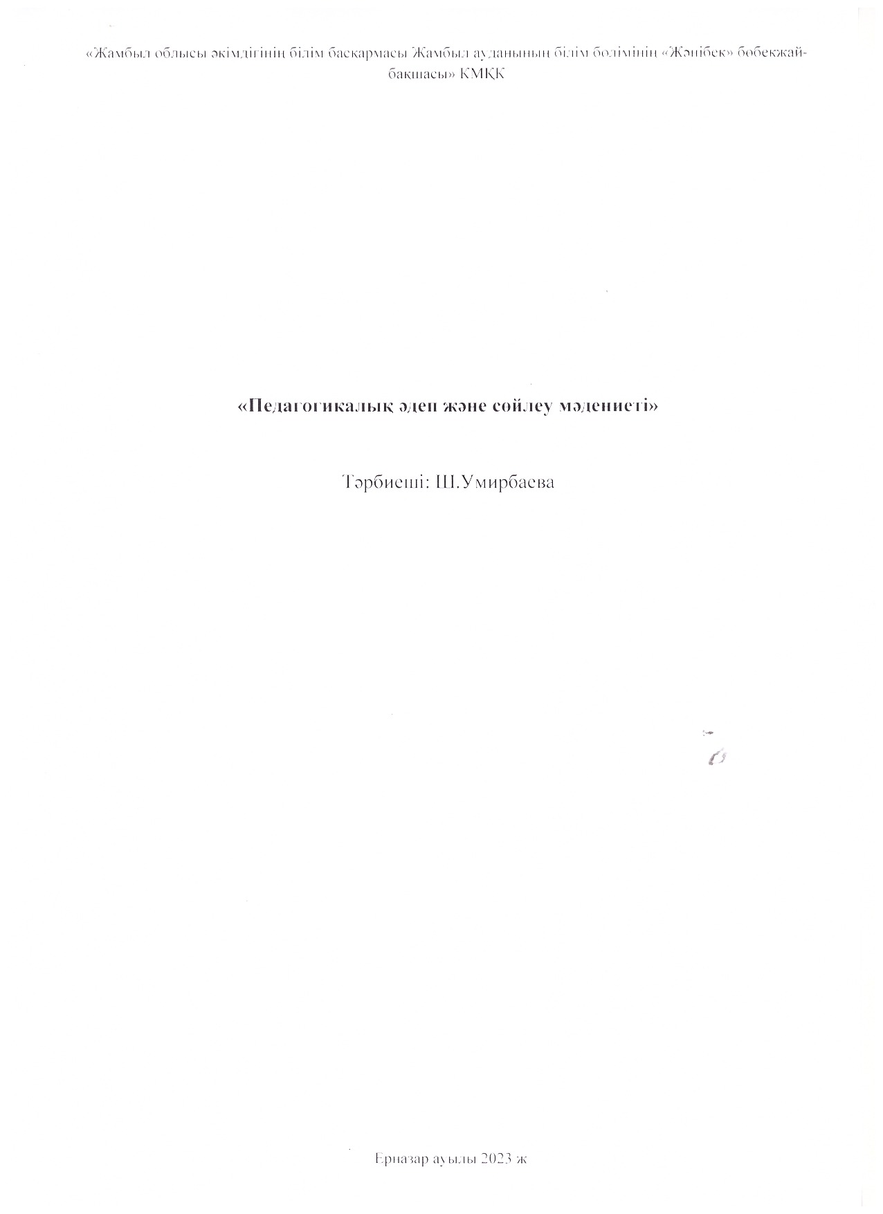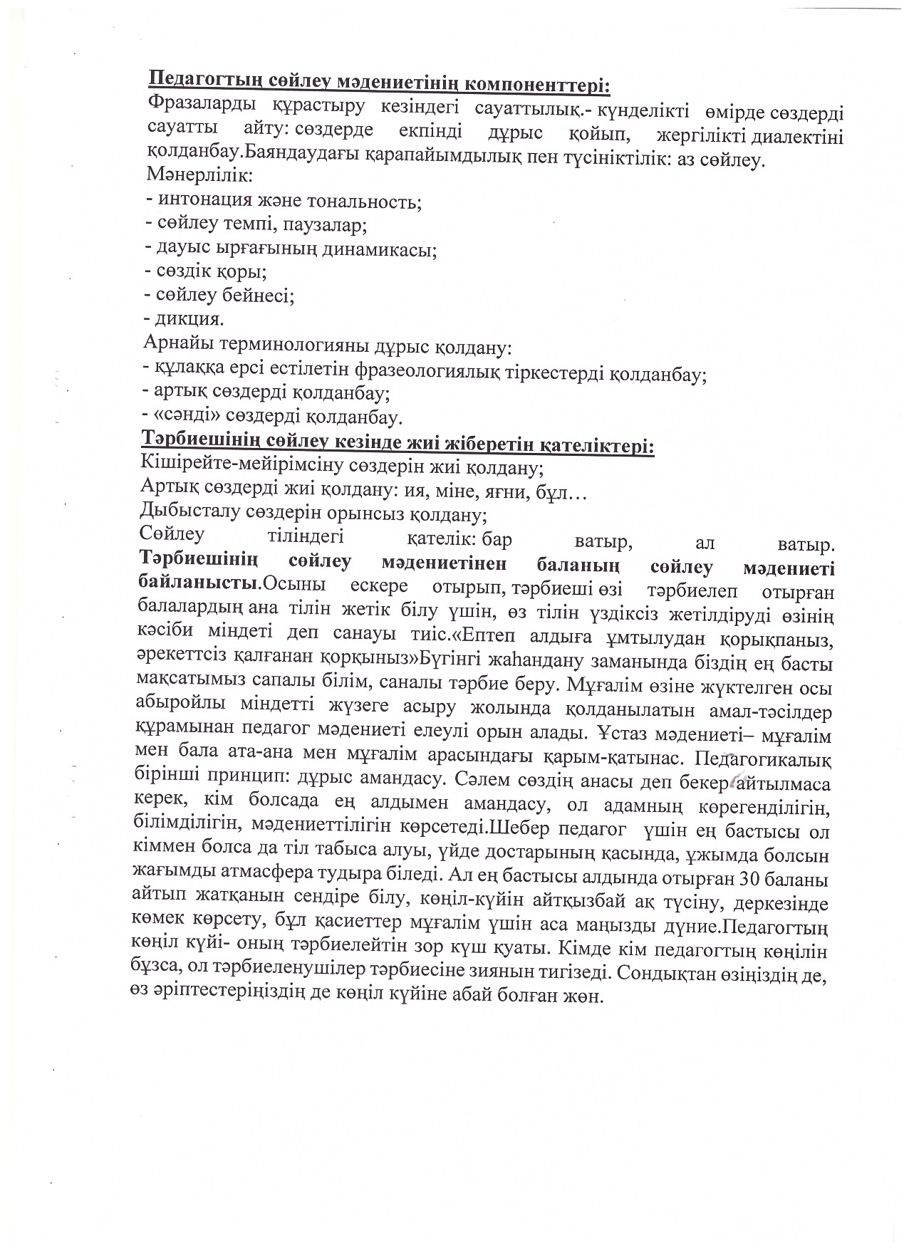 » "Педагогикалық әдеп және сөйлеу мәдениеті"