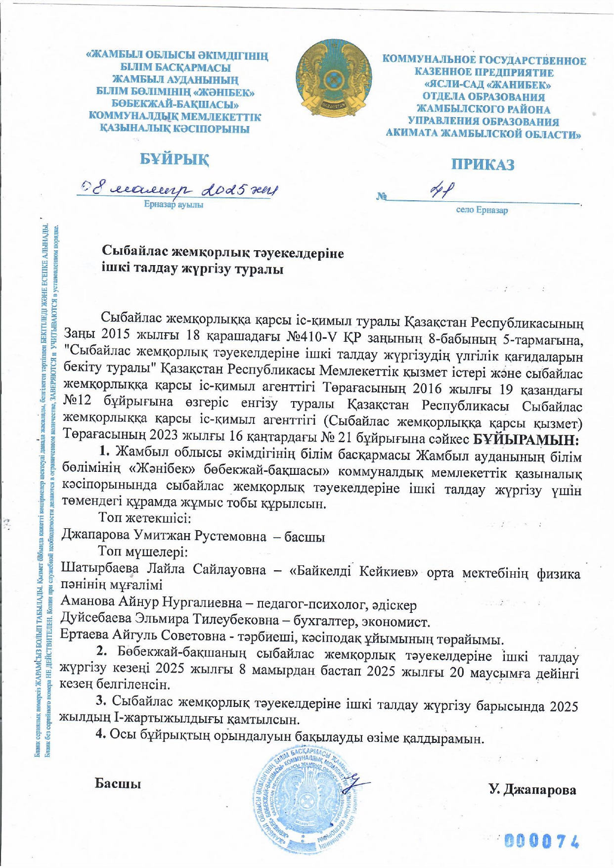 Сыбайлас жемқорлық тәуекелдеріне ішкі талдау жүргізу туралы бұйрық 025