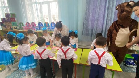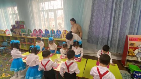 Мектепке дейінгі ортаңғы "Көгершін" тобының 1-мамыр достық күніне арналған "Бір шаңырақ астында" атты ерттеңгілігі Педагог-психолог А.Амановар