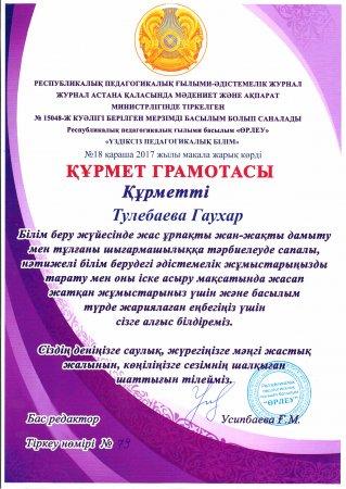 "Көңілді бағдаршам" Тәрбиеші Тулебаева Гаухар Орынтаевна